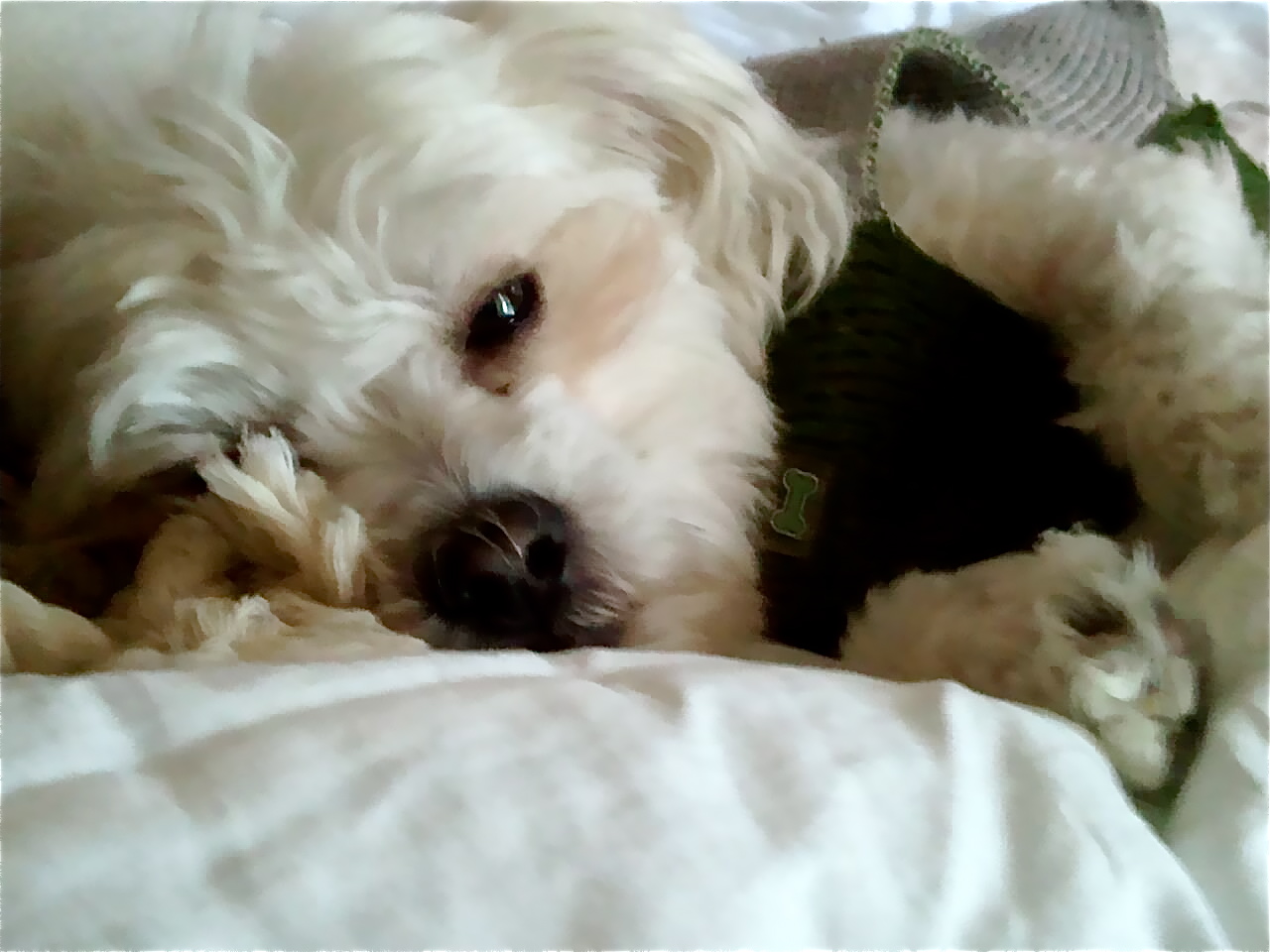Sharing life with the soulful~Buzz, I have learned so much, to throw myself into love, to lay down and nap when I feel the need. To play in a moments notice. It is so funny to me how my life has become an embrace of puppy culture and my own. Buzz is my Indian dog, or Native dog, if I choose to be politically correct. Although he is a Maltese mix, “he is more snips and snails and puppy dog tails.” Buzz can do “Hips don’t lie” like he is Shakira. The dance of: You’re home! You are the love of my life! Where have you been? When you simply went into the next room. I know that kind of love may alarm some. For me, I want to love the world like that. To see everyone as he does his family. He has taught me to receive my inner puppy. That ability to give it all and not hold back. The miracle in this bond is I am allergic to pet hair, I become covered in welts, I itch, I turn red, my breathing becomes labored. All that changed days after we met. He was being trained by my daughter and I was only concerned with how I was affected by his presence in our lives. The Ultimate I. Buzz E., middle name Elvis, he is from Las Vegas after all. Found on the streets of the North side and brought to the Hospital my daughter administers. No name, no chip, matted, scared and sweet. We became connected by heartstrings tied in a double knot and he has become my Master Shifu, I, his Kung Fu Panda. Everything I have learned about love these past two years has been molded by this four~pawed wonder and because of him I crave a different kind of Buzz…